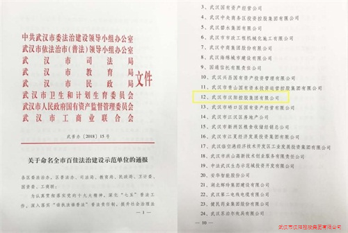 2018年12月25日,武漢市漢陽控股集團(tuán)有限公司迎來一份《關(guān)于命名全市百佳法治建設(shè)示范單位的通報》文件,標(biāo)志著我司法治建設(shè)工作切實做到有重點(diǎn)、有特點(diǎn)、有亮點(diǎn)、有看點(diǎn)。