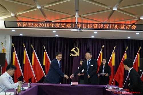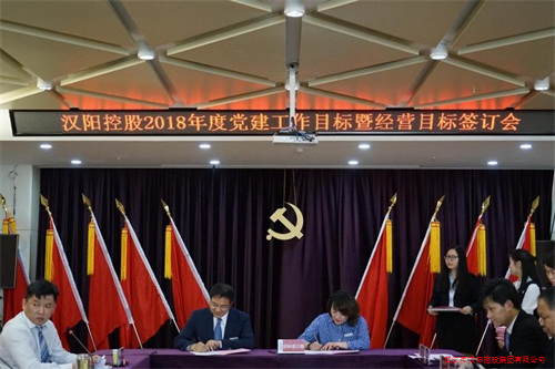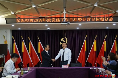2018年4月28日上午,武漢市漢陽控股集團有限公司于金龍公館寫字樓11樓大會議室舉行了2018年度黨建工作目標暨經(jīng)營目標簽訂會。