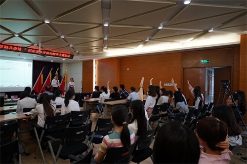 2018年9月29日下午,漢陽(yáng)控股黨委與團(tuán)總支聯(lián)合組織的“‘控股青年說(shuō)·我與漢陽(yáng)共奮進(jìn)’——慶祝建國(guó)69周年暨改革開(kāi)放40周年主題活動(dòng)”在金龍公館寫(xiě)字樓11樓隆重舉行,漢陽(yáng)控股黨委及紀(jì)委成員、經(jīng)營(yíng)班子領(lǐng)導(dǎo)、工會(huì)主席和團(tuán)總支書(shū)記參加了活動(dòng)。